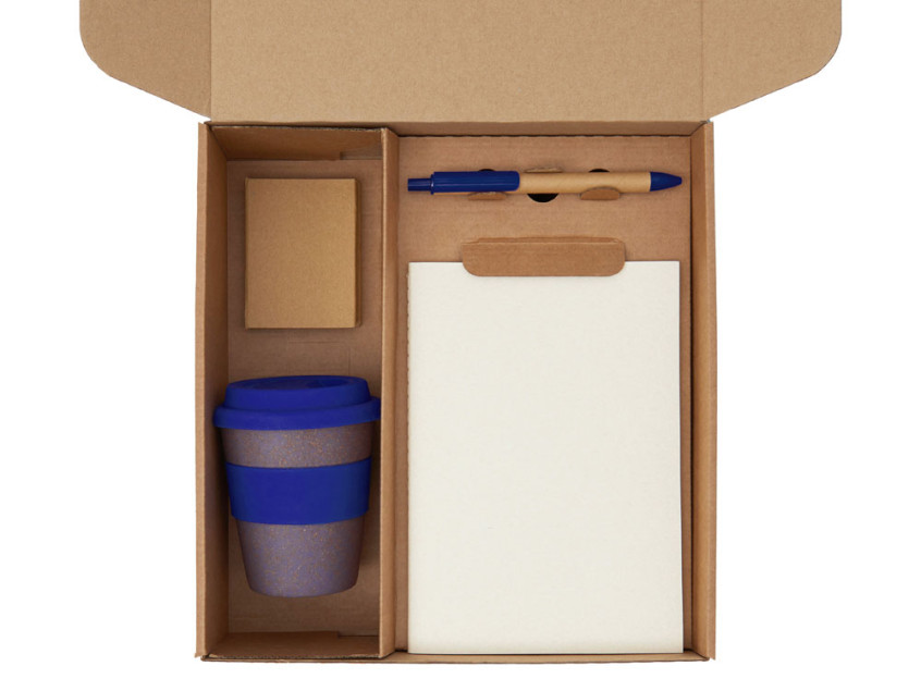 Материал: | блокнот- бумага из переработанных тетра-паков, ручка- картон,пластик, стакан- 50% бамбуковое волокно, 50% полипропилен, коробка- картон |