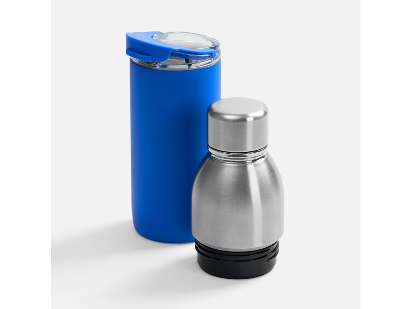 Varianti — это яркий пример посуды с двойной функциональностью. Один и тот же корпус можно превратить как в термостакан для чая и кофе с пластиковой крышкой, так и в термобутылку для прохладительных напитков со стальной крышкой.