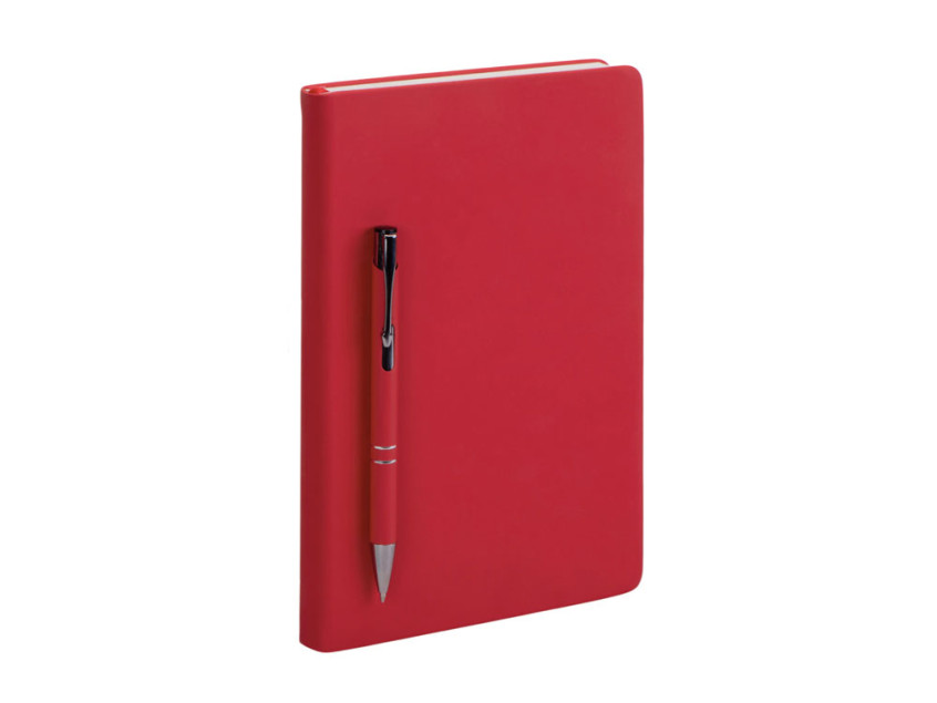 Бизнес-блокнот в твёрдой обложке с магнитным держателем для ручки имеет ляссе в тон обложки. Бумажный блок разлинован в линейку и выполнен из бумаги, полученной из древесины из специальных восполняемых лесных ресурсов, имеет сертификат FSC.
