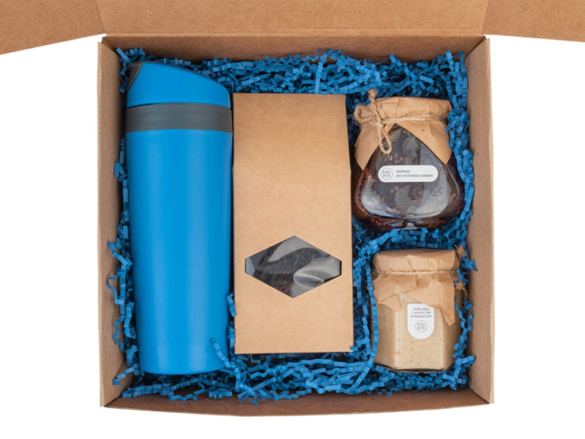 | Материал: | коробка - картон, банка - стекло, термокружка - полипропилен |