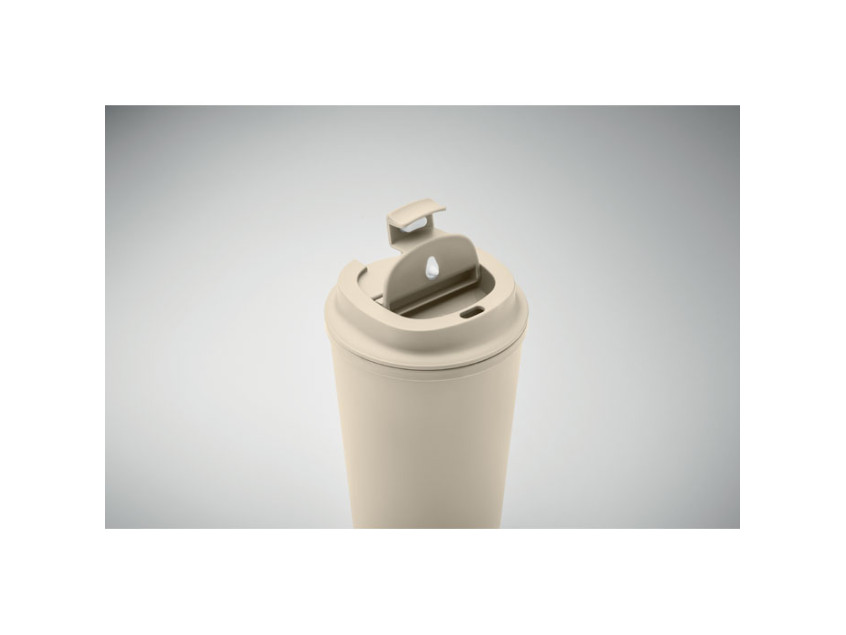 Объем 350 мл идеально подходит для утреннего кофе, ароматного чая или освежающего холодного напитка. Двойные стенки термокружки надежно удерживают температуру, позволяя наслаждаться каждым глотком в любое время дня. Герметичная крышка из переработанного полипропилена и термопластичной резины предотвращает протекание, делая ее идеальной для использования в дороге, на работе или на прогулке.