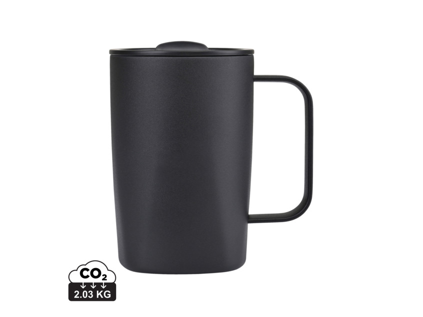 Термокружка с двойными вакуумными стенками сохраняет температуру напитков дольше: холод до 6 и тепло до 4 часов. Изготовлена из высококачественной переработанной нержавеющей стали 18/8 (сертификат RCS) с защитой от образования конденсата. Есть ручка для дополнительного комфорта во время питья.