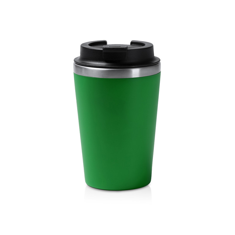 Термостакан с двойными стенками. Внутренняя часть выполнена из нержавеющей стали 304, внешняя — из полипропилена. Крышка винтовая с дозатором. Объём: 350 мл. Поставляется в дизайнерской коробке.