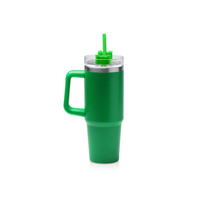 Двухстеночная термокружка из переработанной нержавеющей стали 304. Крышка с трубочкой и винтовой системой закрытия. Объём: 850 мл. Поставляется в дизайнерской коробке.