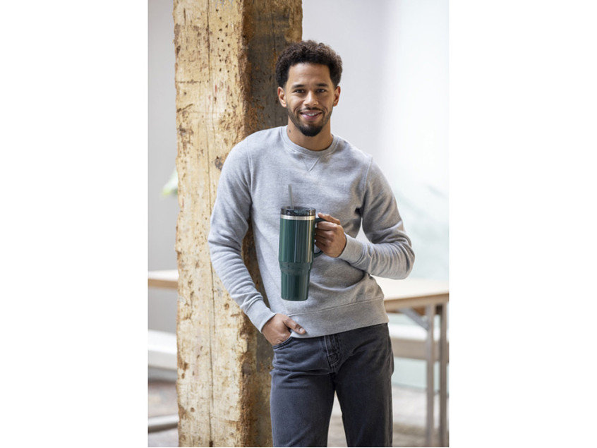 Кружка Melbourne имеет прочную конструкцию с двойными стенками, позволяющую сохранять напитки горячими или холодными в любых условиях. Внутренняя стенка кружки изготовлена из переработанного пластика, а внешняя — из переработанной нержавеющей стали, сертифицированной RCS. Кружка емкостью 1200 мл позволит вам стильно поддерживать водный баланс в течение дня. Имеет защитную крышку с двумя отверстиями и поворотным замком, который предотвращает разливание. В комплект входит соломинка из переработанных материалов для пищевых продуктов. Только ручная мойка. Recycled Plastic, 91% Recycled stainless steel.