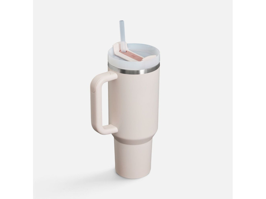 Культовая термокружка Quencher H2.0 имеет вращающуюся крышку с тремя положениями отверстия: отверстие для трубочки, отверстие для питья и полностью закрытое. На поворотной части крышки есть уплотнитель, который удерживает входящую в комплект многоразовую трубочку.