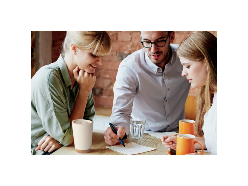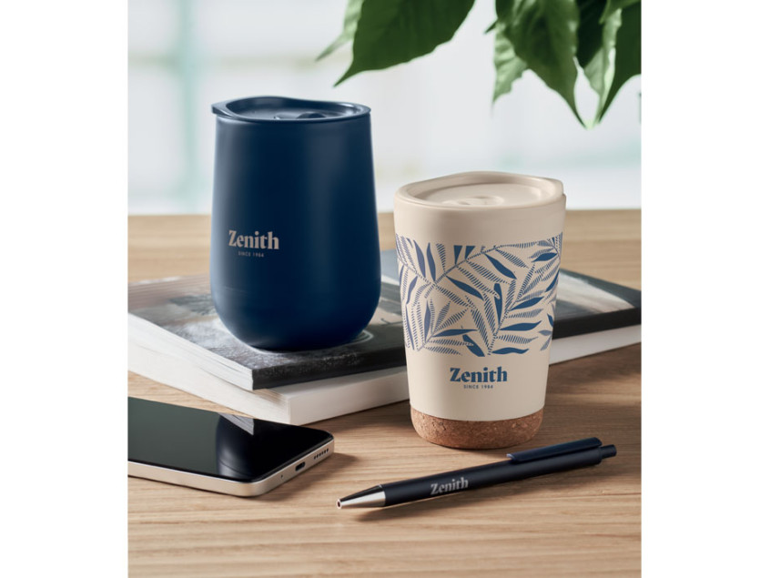 Эта термокружка — настоящая находка для тех, кто ценит комфорт и экологичность. Она изготовлена из переработанного полипропилена, что делает ее не только практичной, но и дружелюбной к окружающей среде. Двойные стенки надежно сохраняют температуру вашего напитка, будь то ароматный кофе утром или освежающий чай в обеденный перерыв. А пробковое основание добавляет изюминку, делая кружку устойчивой и приятной на ощупь.
