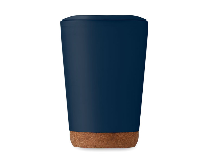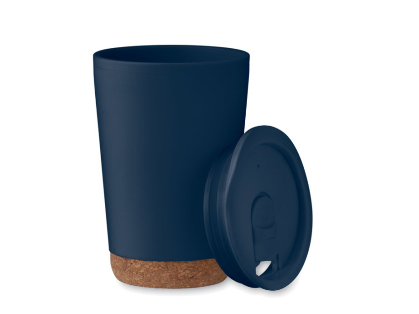 Термокружка с двойными стенками из полипропилена и пластиковой крышкой. Пробковое основание. Объем: 300 мл.