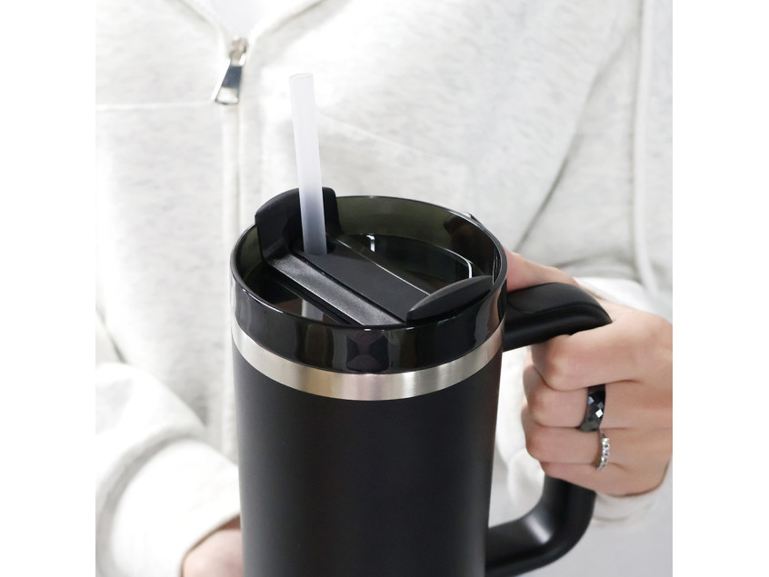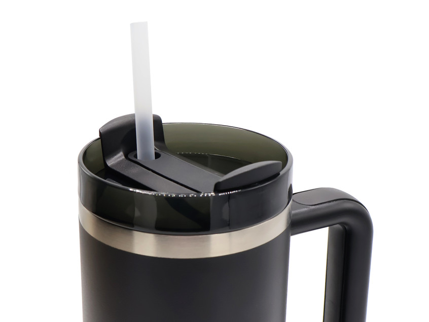 Для кружки Stayway отверстие под соломинку для питья смещено относительно центра и размещено для положения ручки в левой руке. Для положения кружки в правой руке будет удобнее использовать соломинку.