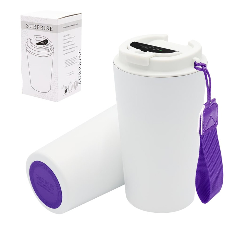 Термокружка Surprise To Go с индикатором, белая/фиолетовая