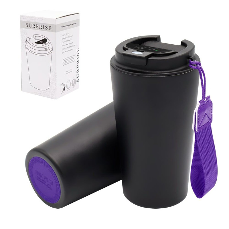 Термокружка Surprise To Go с дисплеем выполнена из пищевой нержавеющей стали. Имеет двойные стенки с вакуумной изоляцией, а крышка изготовлена из пищевого безопасного для человека пластика. Термокружка Surprise To Go не только сохраняет ваши напитки горячими, но и показывает температуру напитка! Уникальная особенность данной термокружки – наличие сенсорного индикатора температуры, расположенного в крышке. Чтобы узнать температуру напитка внутри кружки, достаточно прикоснуться к поверхности крышки. Работает от 1 батарейки типа CR2032 (в комплекте), которую в последующем можно самостоятельно заменить.