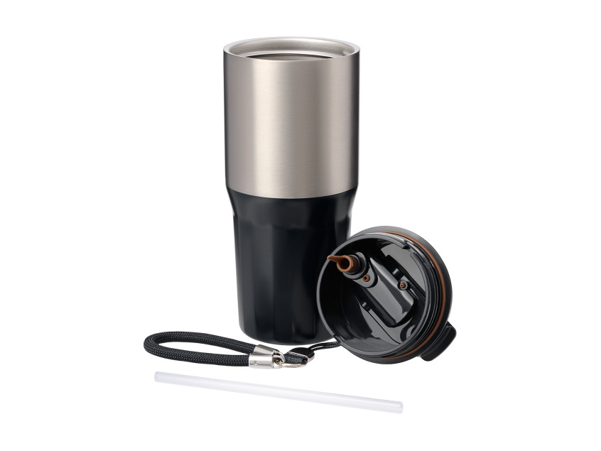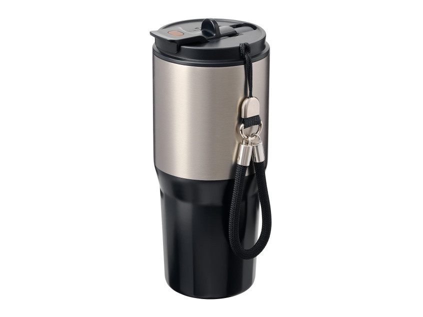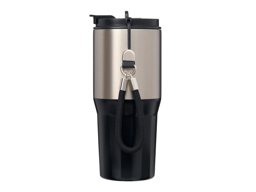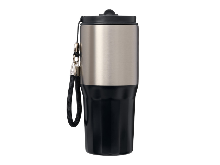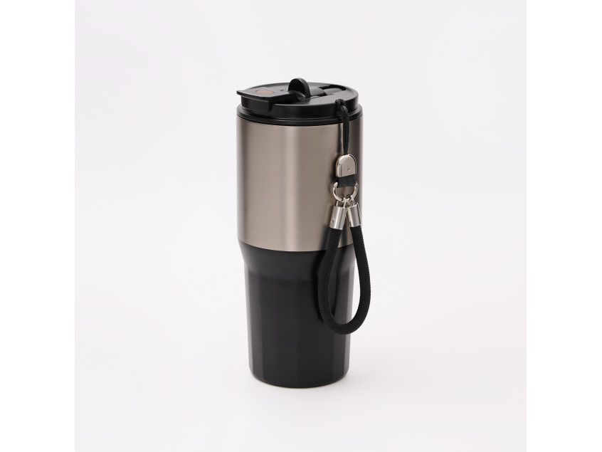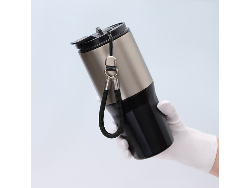 Внутренний слой из пищевой стали 304 марки, которая не впитывает запахи, не окисляется и сохраняет вкус напитка. Внешний корпус надежно защищен 201 сталью с комбинированным покрытием, где матовая текстура сочетается с гладким акцентом. В комплекте идет удобный, прочный и легко снимаемый ремешок, который превращает термокружку в идеальный аксессуар для активного образа жизни.