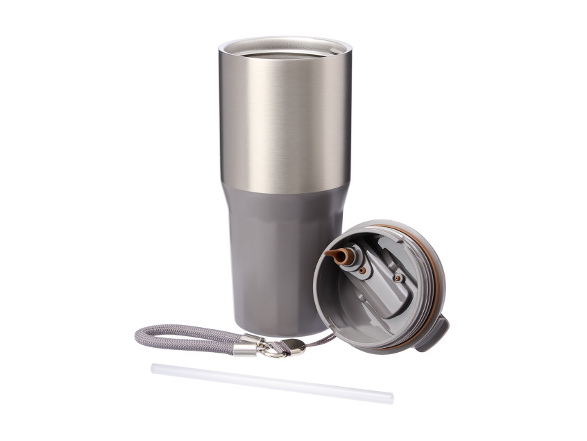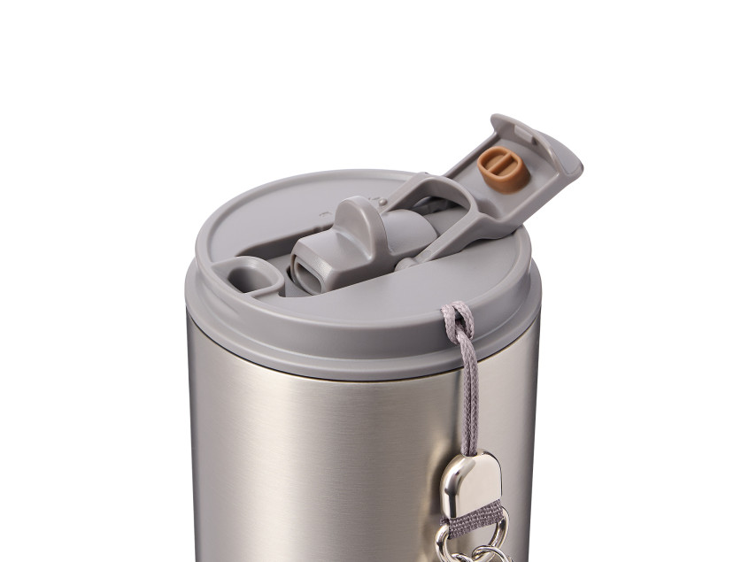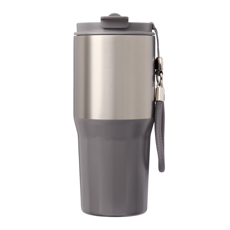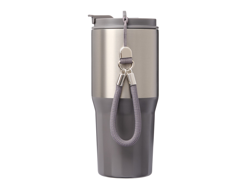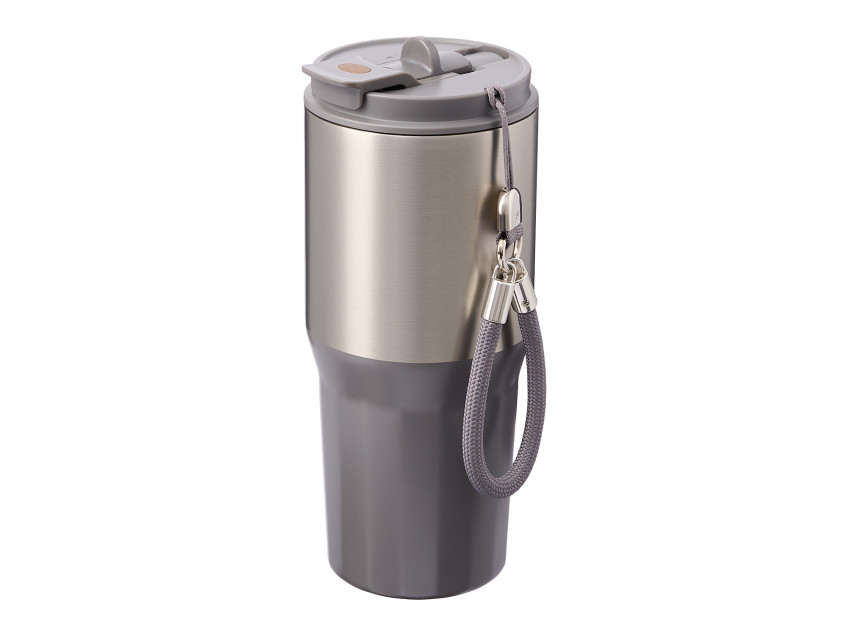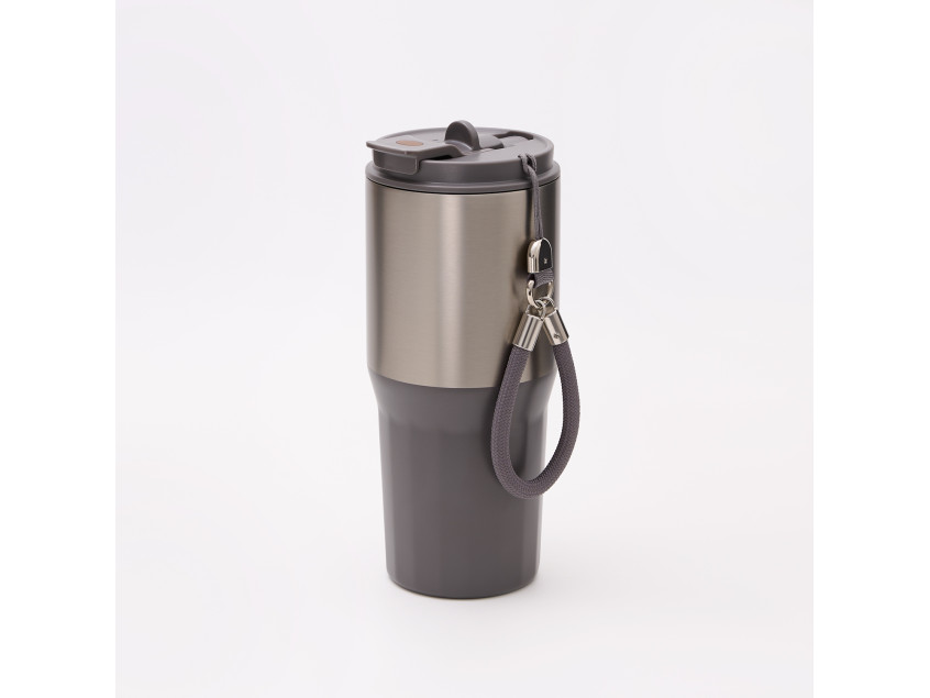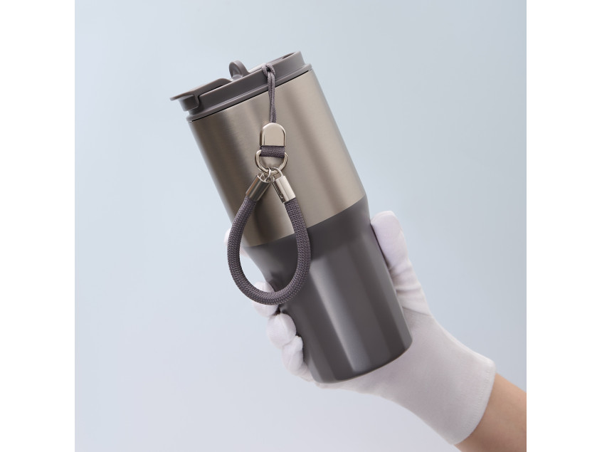 Внутренний слой из пищевой стали 304 марки, которая не впитывает запахи, не окисляется и сохраняет вкус напитка. Внешний корпус надежно защищен 201 сталью с комбинированным покрытием, где матовая текстура сочетается с гладким акцентом. В комплекте идет удобный, прочный и легко снимаемый ремешок, который превращает термокружку в идеальный аксессуар для активного образа жизни.