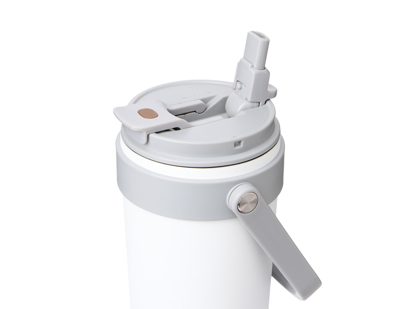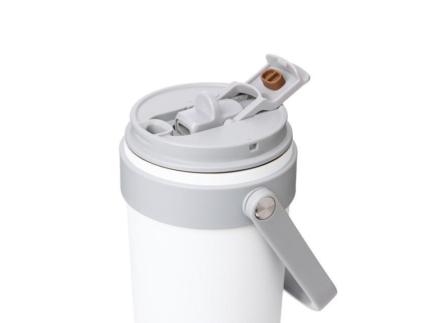Крышка оснащена трубочкой для холодных напитков и классическим клапаном для горячих.  Функциональная завинчивающаяся крышка с удобной ручкой и надежным клапаном с силиконовым уплотнителем обеспечивает безопасность в использовании.