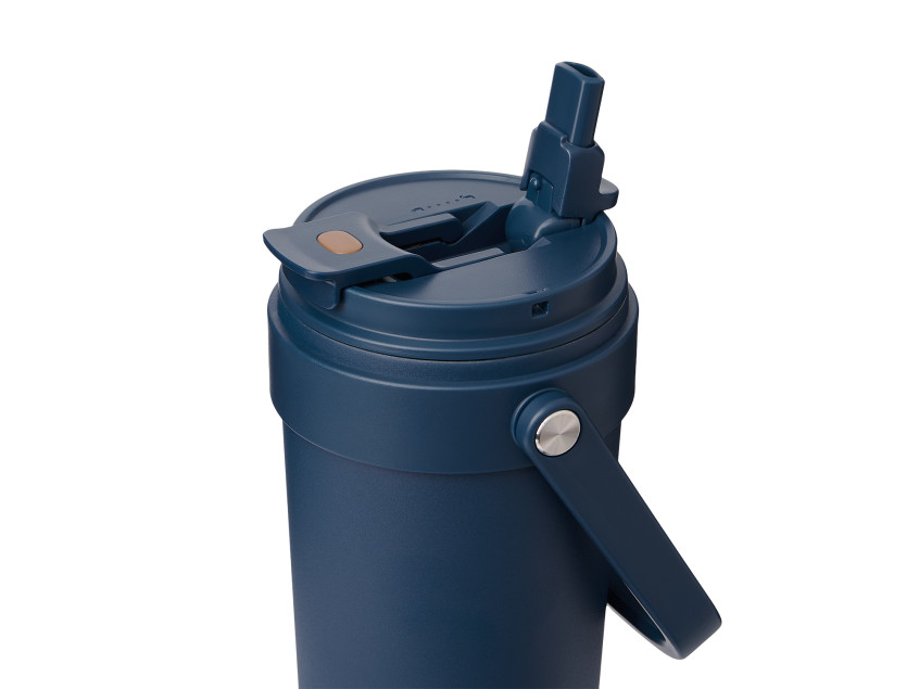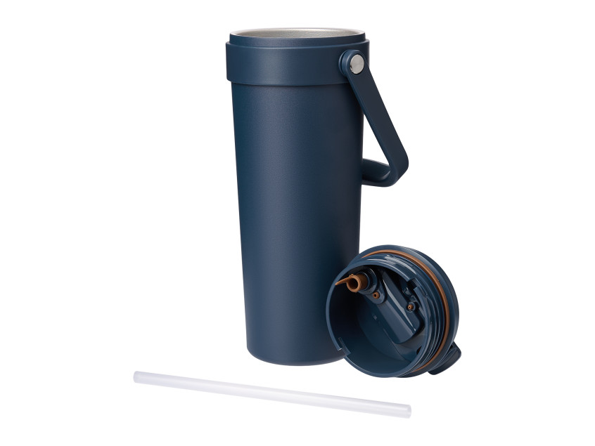 Крышка оснащена трубочкой для холодных напитков и классическим клапаном для горячих.  Функциональная завинчивающаяся крышка с удобной ручкой и надежным клапаном с силиконовым уплотнителем обеспечивает безопасность в использовании.