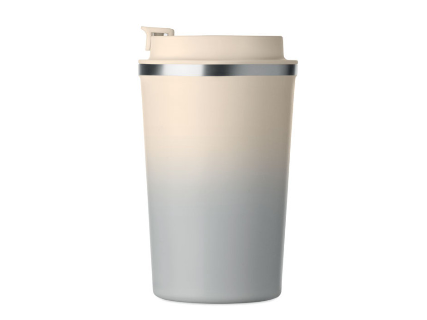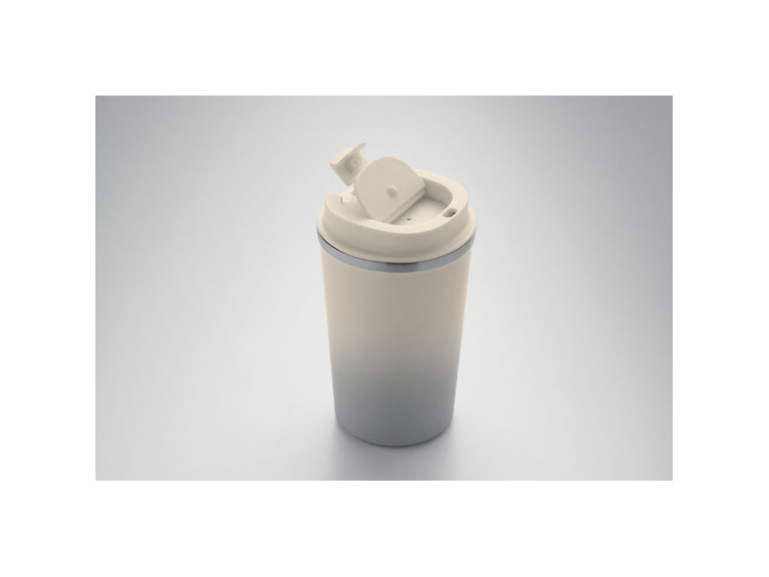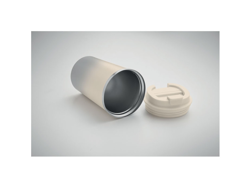 Термостакан с двойными стенками из переработанной нержавеющей стали 90% и 10% нержавеющей стали с крышкой из полипропилена. Объем: 350 мл. Герметичный.