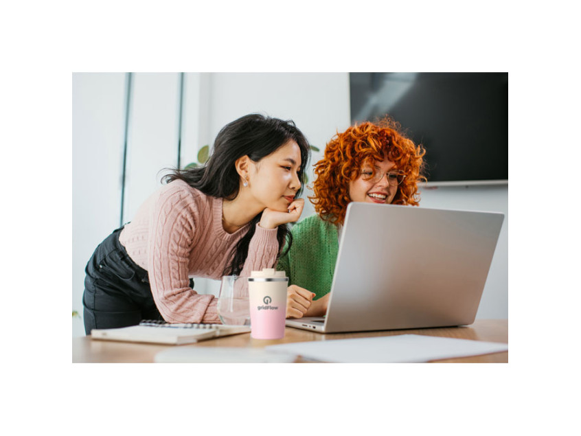 Термостакан с двойными стенками из переработанной нержавеющей стали 90% и 10% нержавеющей стали с крышкой из полипропилена. Объем: 350 мл. Герметичный.