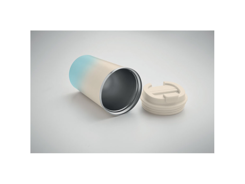 Термостакан с двойными стенками из переработанной нержавеющей стали 90% и 10% нержавеющей стали с крышкой из полипропилена. Объем: 350 мл. Герметичный.