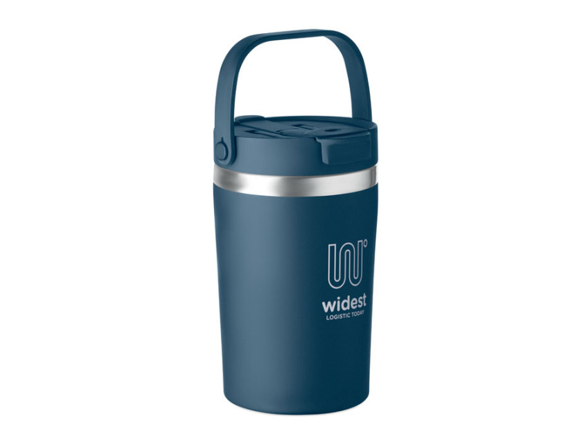 Термостакан с двойными стенками из переработанной нержавеющей стали 90% и 10% нержавеющей стали и крышкой 2-в-1 из полипропилена (PP) с носиком и трубочкой. Герметичный и прочный. Объём: 350 мл.
