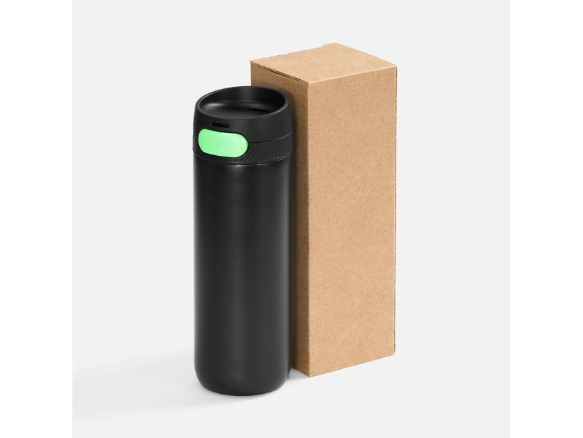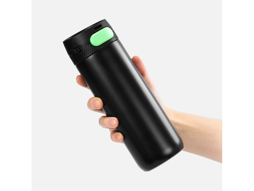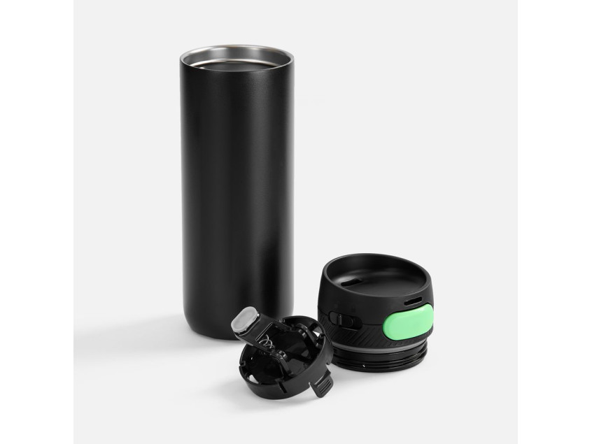 Термостакан X1 с цветной кнопкой, черный с зеленым