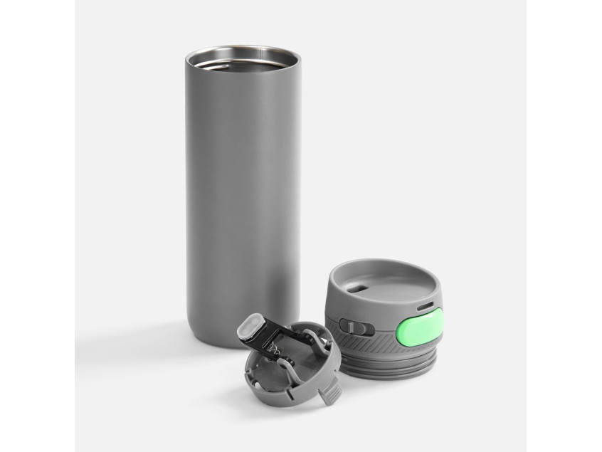 Термостакан X1 с цветной кнопкой, серый с зеленым