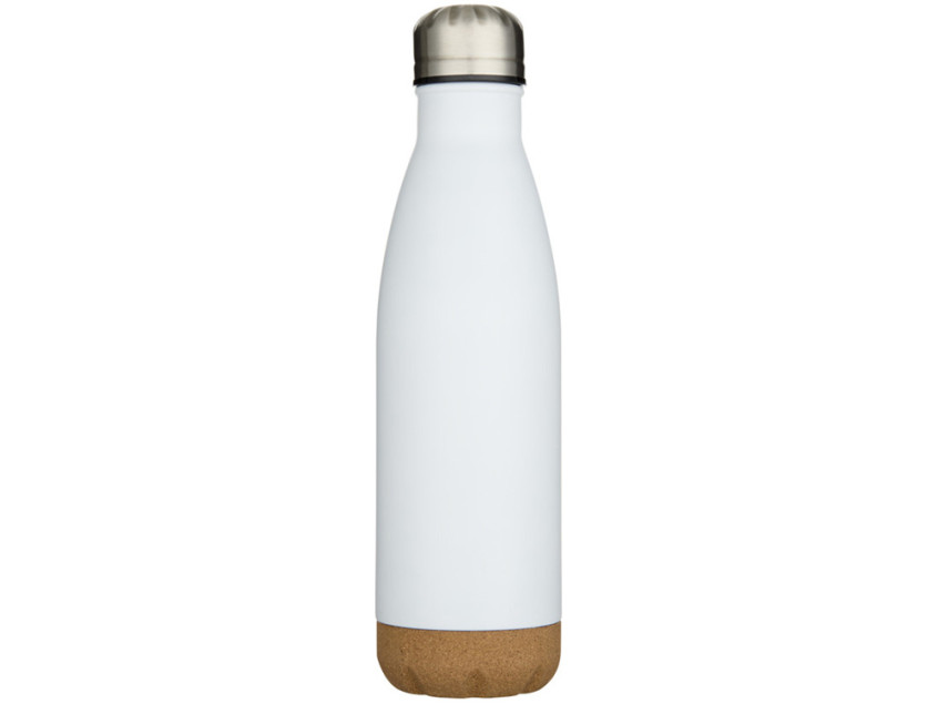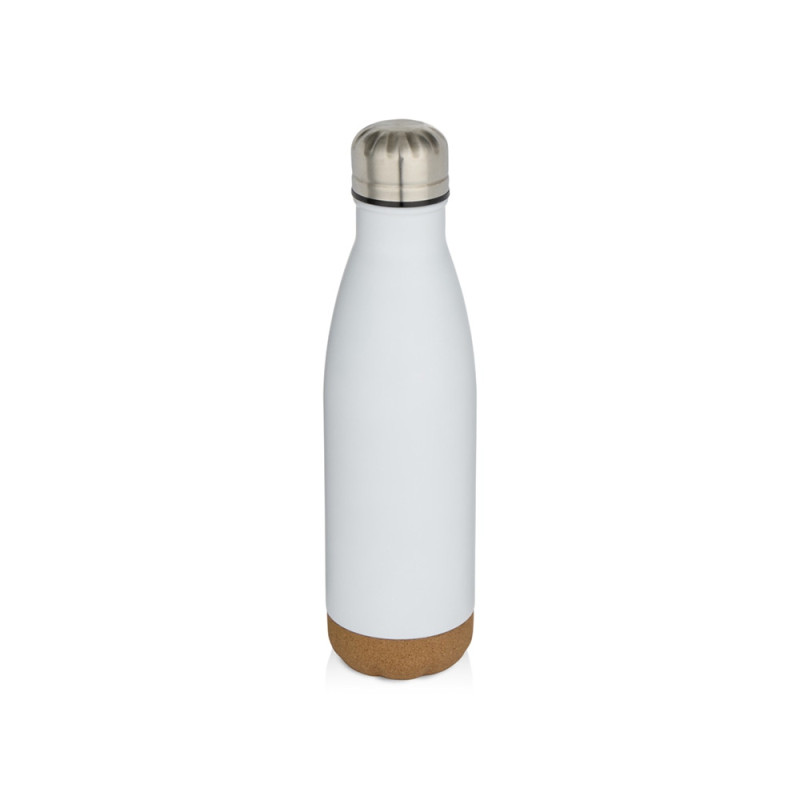 Бутылка для воды из нержавеющей стали с вакуумной изоляцией и пробковыми деталями в нижней части. Двойная изоляция стенок сохраняет напитки горячими или холодными в течение нескольких часов. Поставляется в подарочной коробке из переработанного картона. Объем: 500 мл. 90% нержавеющая сталь, 10% Пробка. упаковка FSC Mix Credit P5.1 CU-COC-877277.