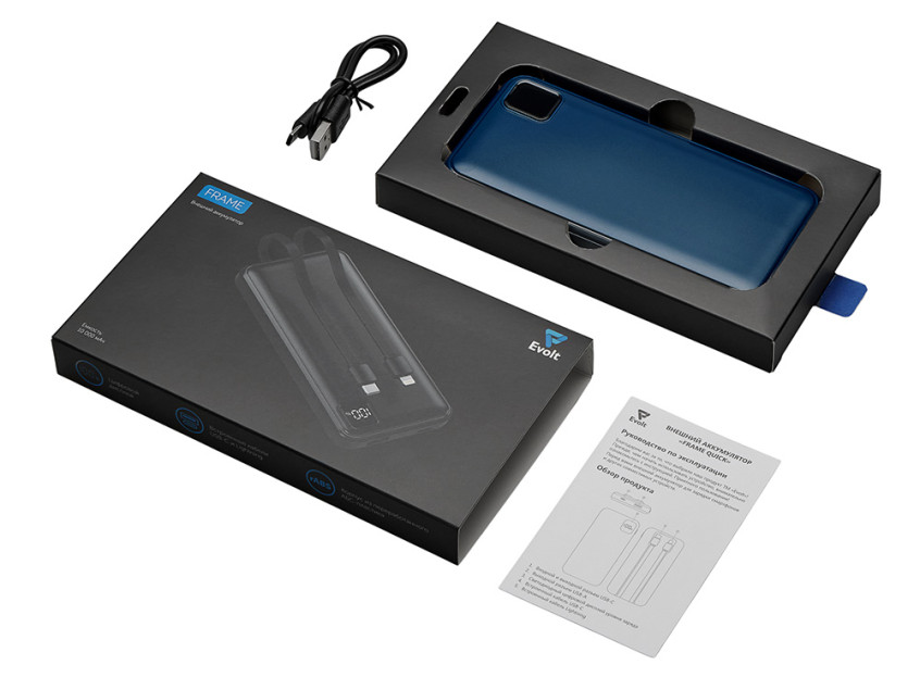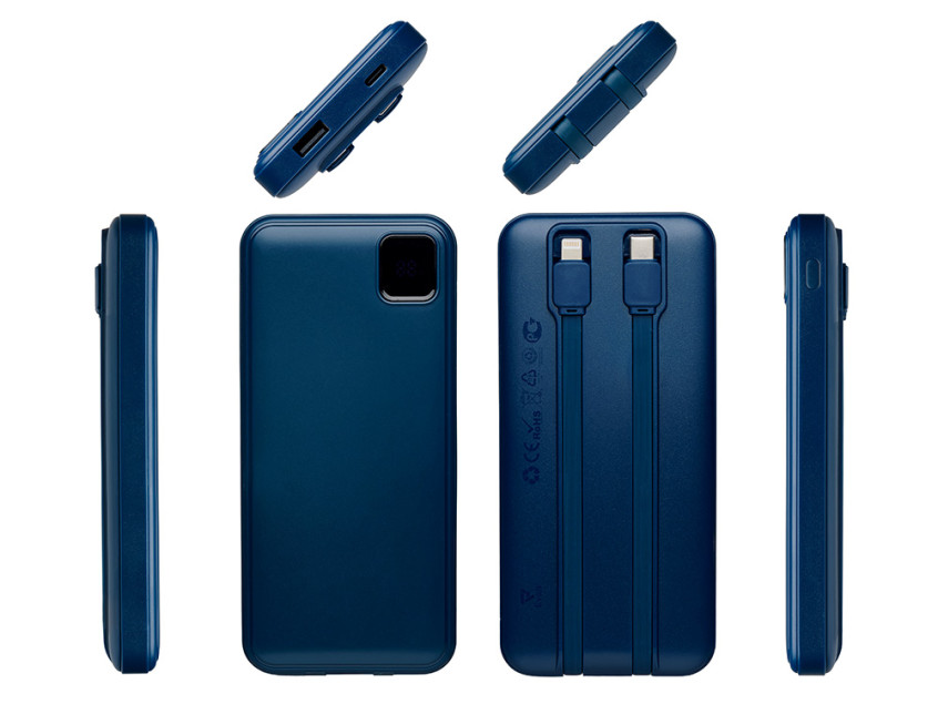 Удобный внешний аккумулятор с встроенными кабелями USB-C и Lightning — ваш надежный партнер в путешествиях, на встречах и в повседневных задачах. Цифровой дисплей в реальном времени показывает точный остаток заряда, а компактные габариты делают его таким же удобным, как смартфон. Прочный корпус из переработанного АБС-пластика и емкость 10000 мАч обеспечивают долгую работу даже при интенсивном использовании. Идеальный выбор для тех, кто ценит комфорт и функциональность в одном устройстве. Продуманная упаковка: для открытия просто потяните за язычок, и появится гаджет с нанесением.