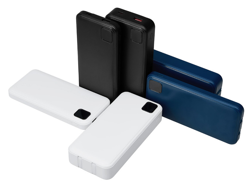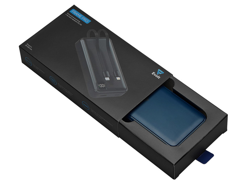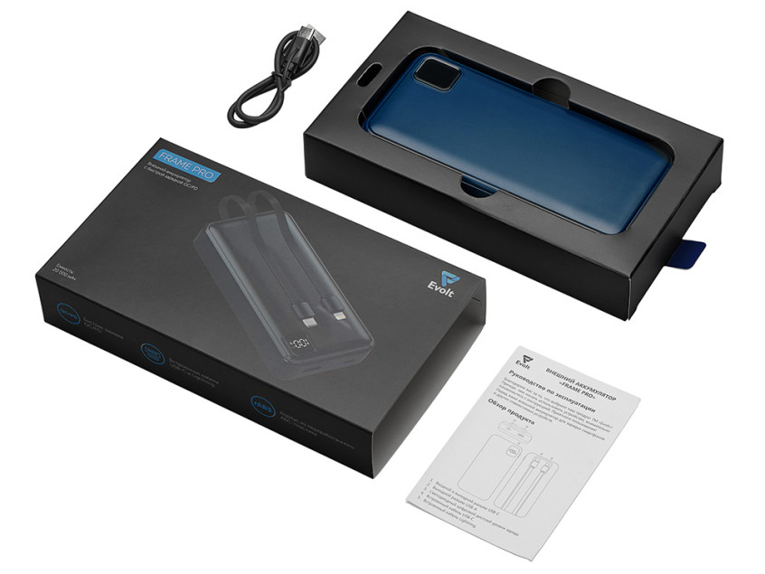 Внешний аккумулятор со встроенными кабелями Фрэйм Про, быстрая зарядка, 20000мач