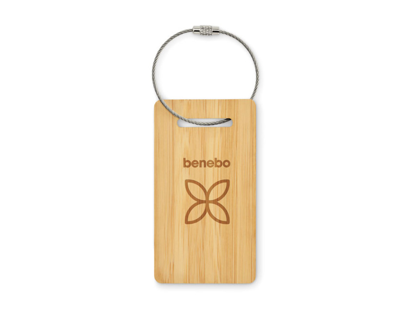 Багажная бирка из бамбука с креплением из нержавеющей стали.
