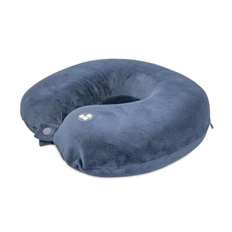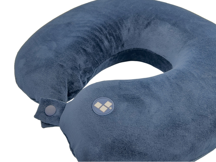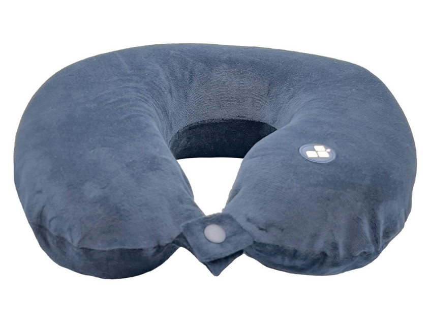 Удобная кнопочная застёжка надёжно фиксирует подушку на шее, а в комплект входит прочный круглый чехол на молнии — для компактного хранения и перевозки.