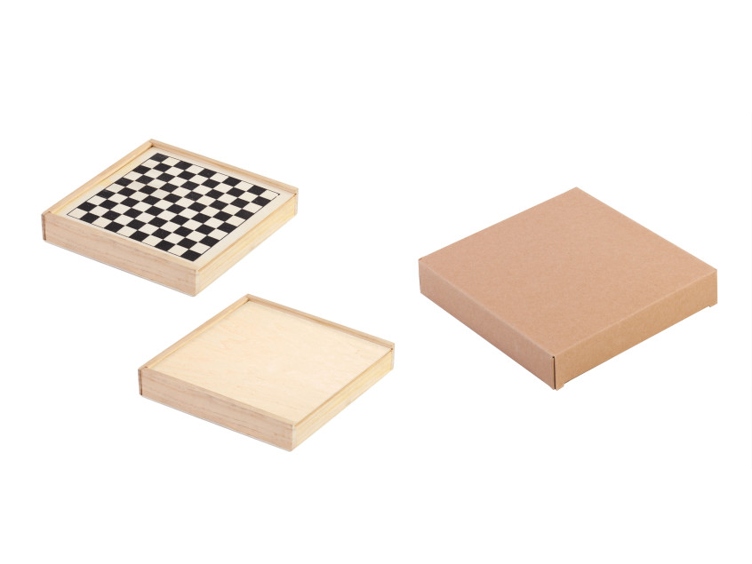 Игровое поле для шахмат и шашек нанесено прямо на выдвижную крышку футляра, обратная сторона остается чистой.