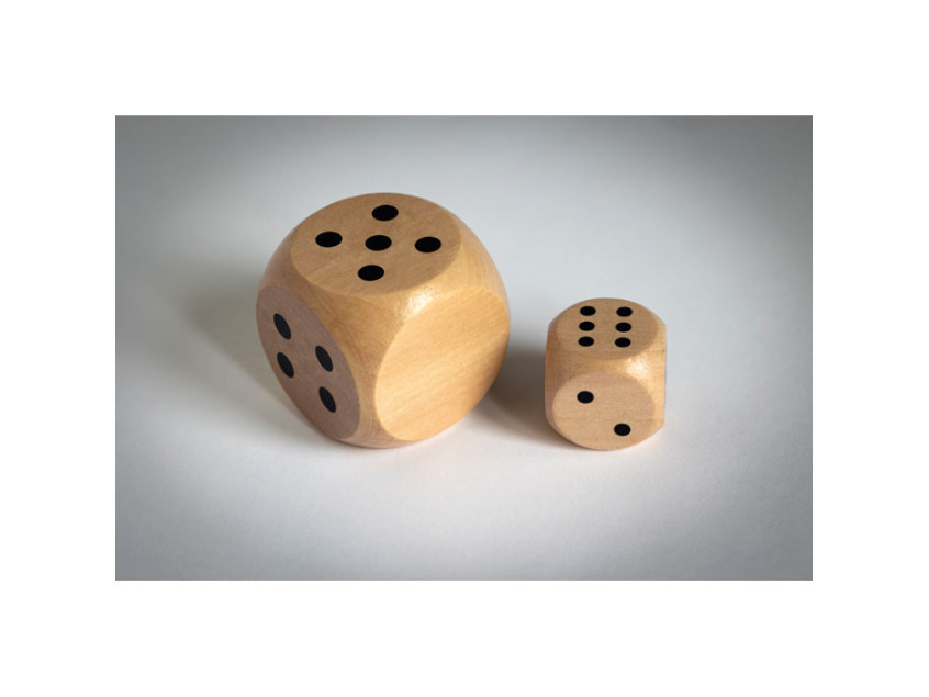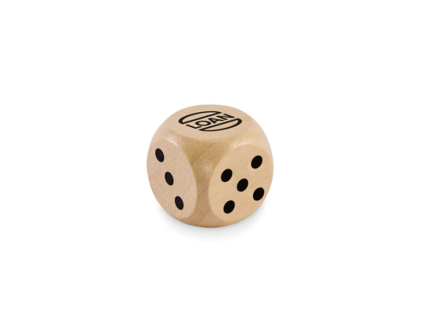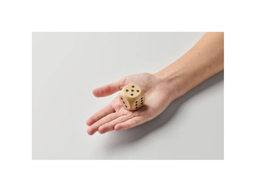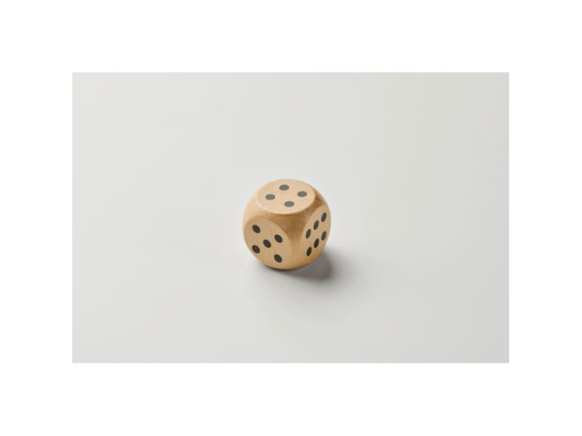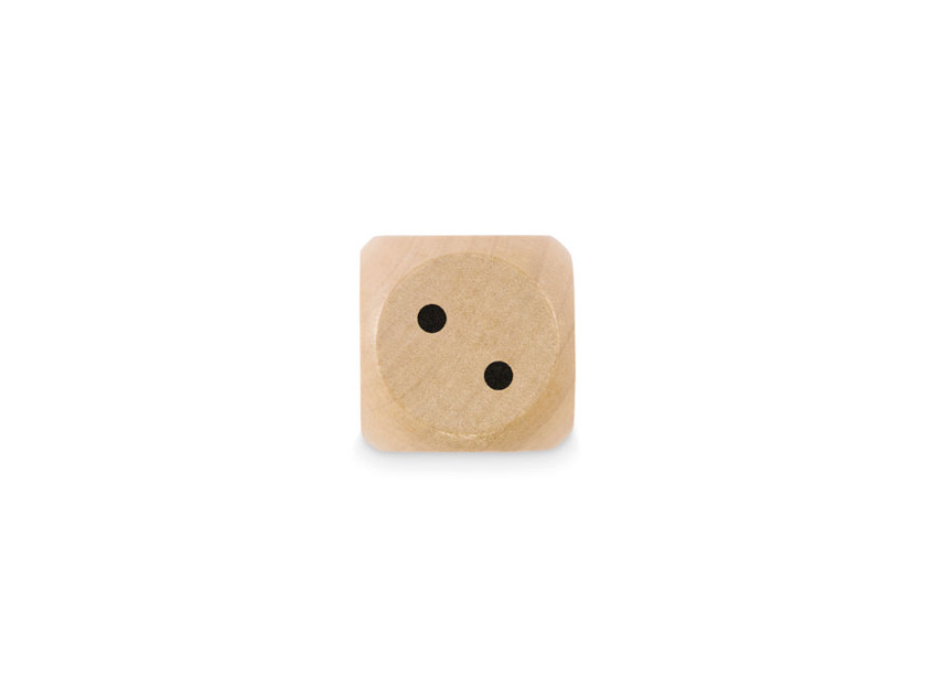 Dice in schima wood. 3cm diameter. This item can only be delivered in multiples of inner packaging being 50 pcs. 1 side reserved for printing. FSC®-certified | FSC 100%, W15.2, FSC-C213206
