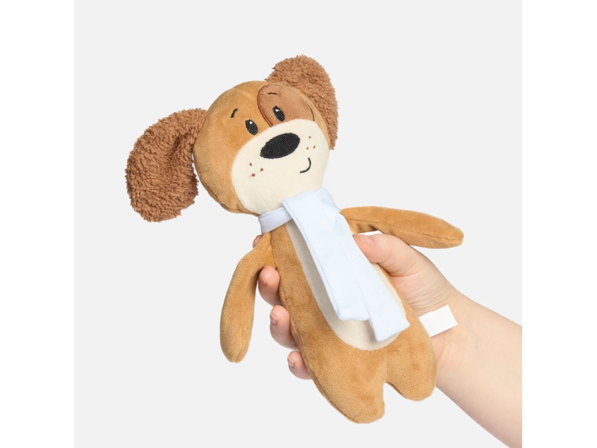 Симпатичная и дружелюбная собачка может стать надежным спутником и верным талисманом в любом деле. Шарфик снимается — так на него легко нанести пожелание или логотип компании.