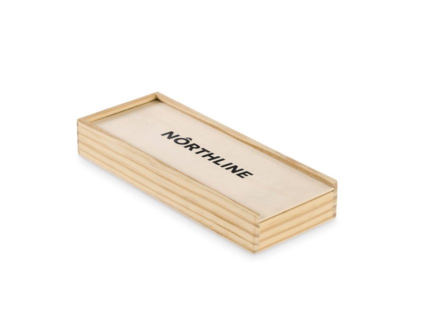 Wooden domino and recycled paper playing cards set. Presented in MDF box.