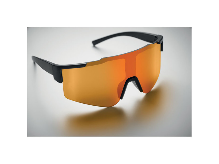 Спортивные солнцезащитные очки с зеркальными линзами и черной оправой. Защита UV400.