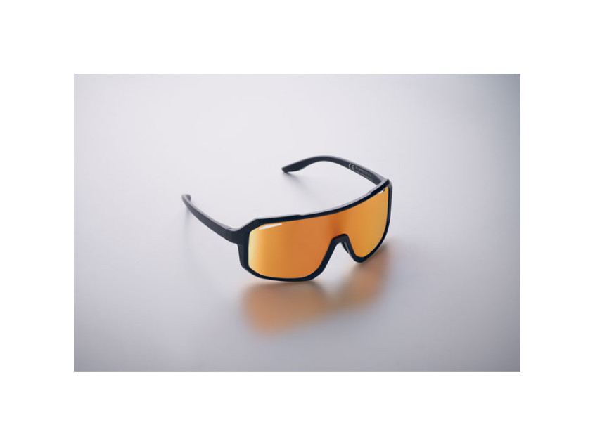 Спортивные солнцезащитные очки с зеркальными линзами и цветной оправой. Защита от УФ-излучения UV400.