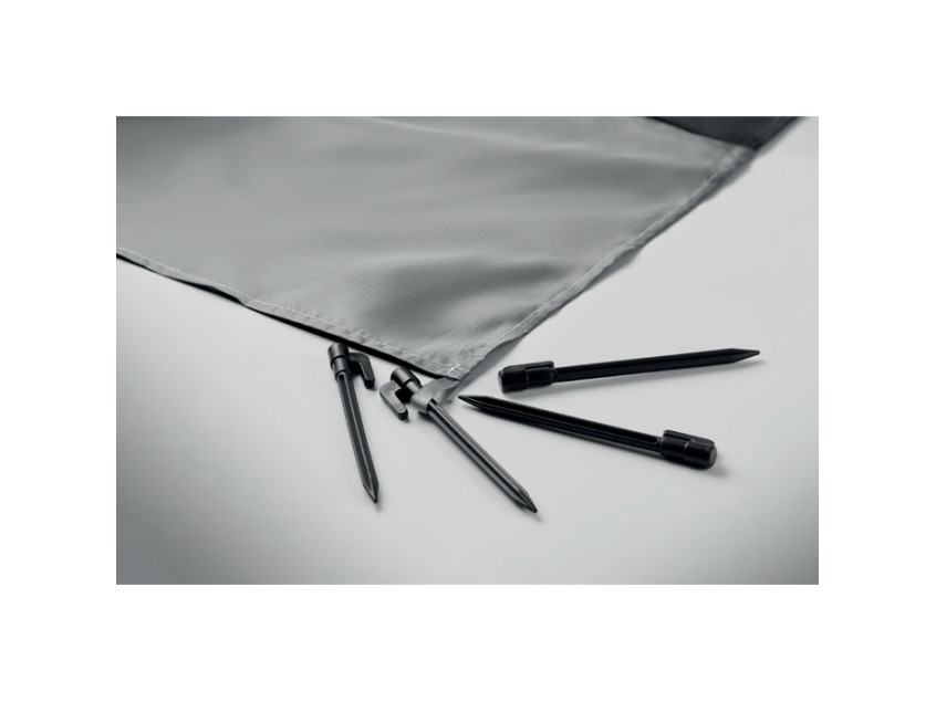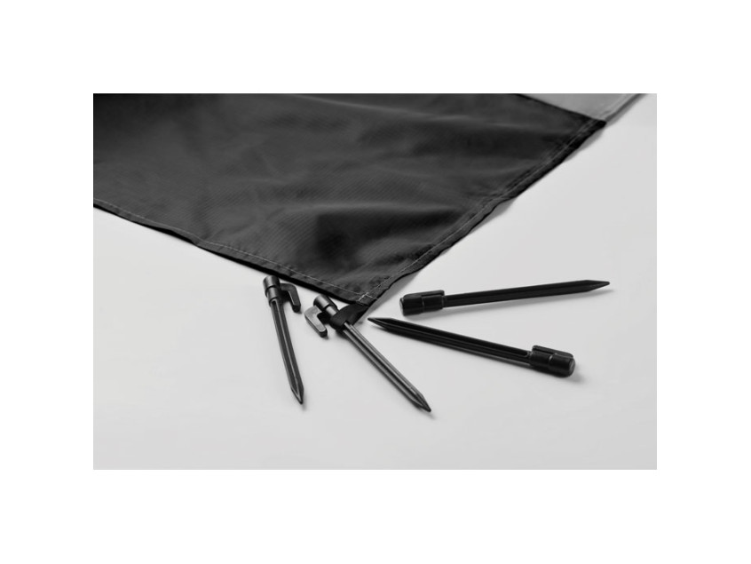 Легкий пляжный коврик из полиэстера 210T размером 200x210 см. В комплекте 4 черных крючка и мешок для переноски.