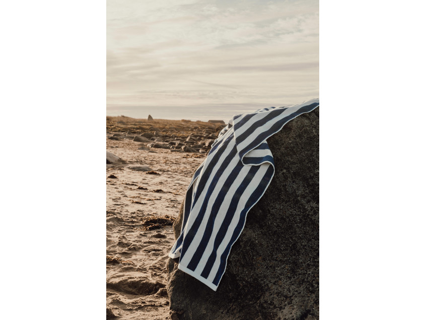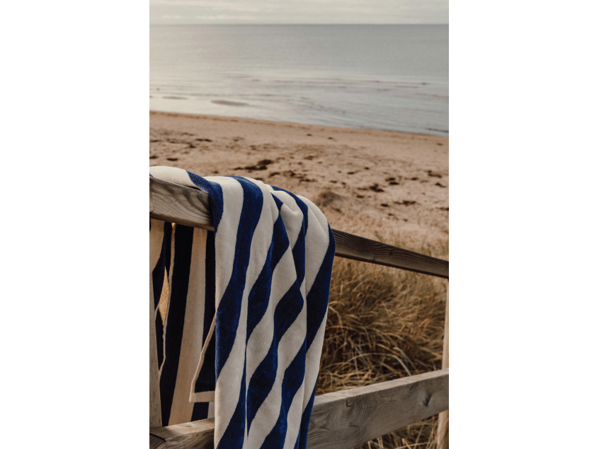 Это пляжное полотенце станет вашим идеальным спутником для солнечных дней на пляже, яхте или у бассейна. Классическая сине-белая полоска — это культовый принт, ассоциирующийся с морским стилем, французским шиком и летней свежестью.
