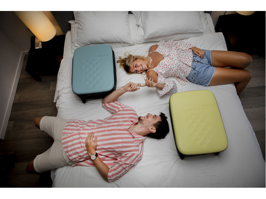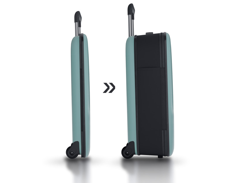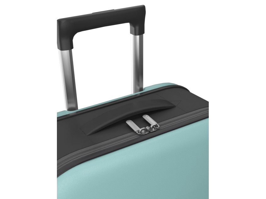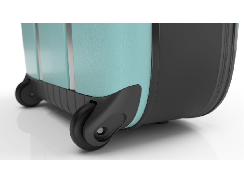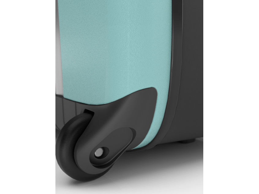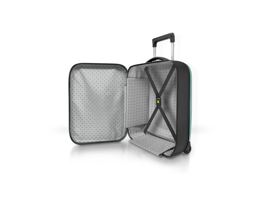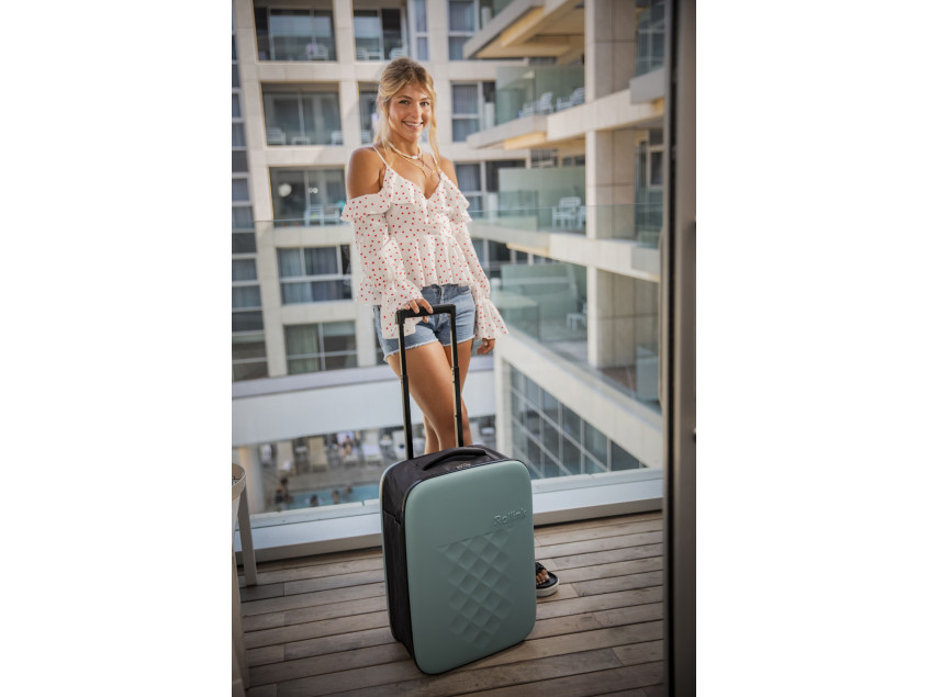 Складной легкий чемодан Rollink Vega II бирюзового цвета. Размер 55х40х20 см. В сложенном виде толщина составляет 5 см, с колёсами 8,5 см. Объем 40 л. Вес 2,4 кг. Жесткие стенки сделаны из поликарбоната повышенной ударопрочности. Бока мягкие, из темно-серого плотного полиэстера с высокой водоотталкивающей способностью. Чемодан уверенно стоит вертикально даже в сложенном состоянии. Внутри три откидывающихся жестких клапана на дне и боках чемодана, крепятся липучками и сохраняют форму чемодана в собранном виде. Эластичная Х-образная стяжка для фиксации предметов внутри чемодана. Боковой easy access карман 12х18,5 см на липучке для документов и телефона. Удлиненная надежная выдвижная телескопическая ручка из алюминия с несколькими уровнями фиксации высоты ручки (от пола 88/96/104 см) для людей разного роста и удобная мягкая ручка сверху чемодана, чтобы было удобно нести его в руках. 2 колеса со специальным покрытием и подшипниками для более плавного и бесшумного передвижения. Высококачественная молния черного цвета. В комплект входит эластичная стяжка для фиксации чемодана в сложенном состоянии.