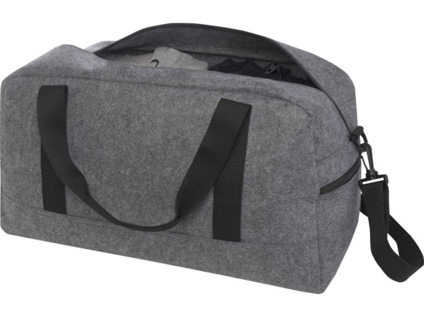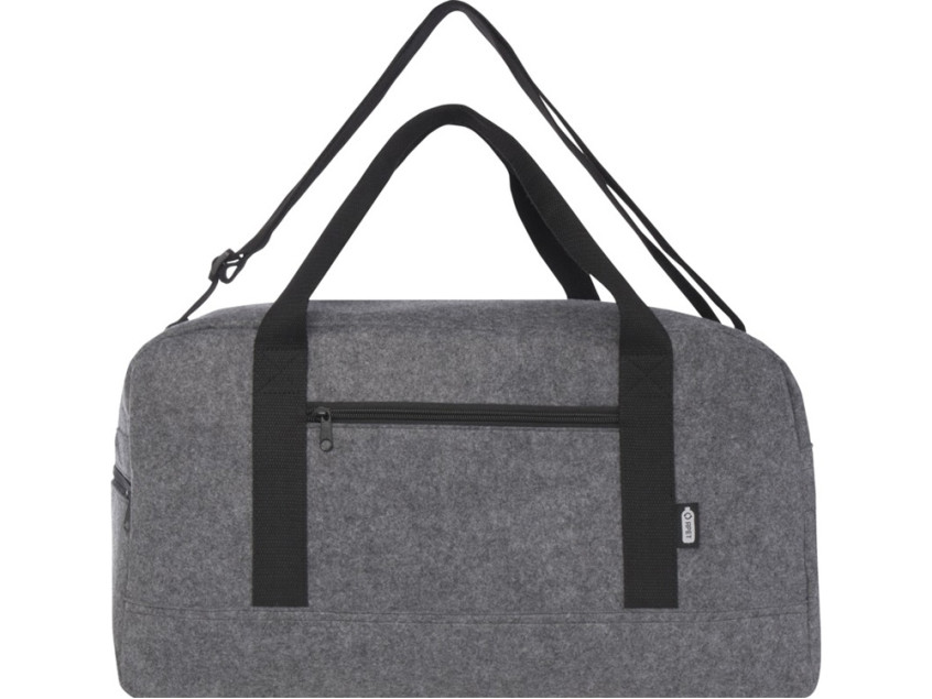 Многоцелевая спортивная сумка из мягкого и прочного высококачественного переработанного фетра, сертифицированного согласно GRS. Имеет большое основное отделение, передний карман на молнии, боковой карман, съемные и регулируемые плечевые ремни и удобные хлопковые ручки для различных способов переноски. Сумка оснащена небольшими ножками/шпильками в нижней части, которые удерживают ее немного приподнятой над землей, помогая предотвратить попадание грязи или влаги на сумку.