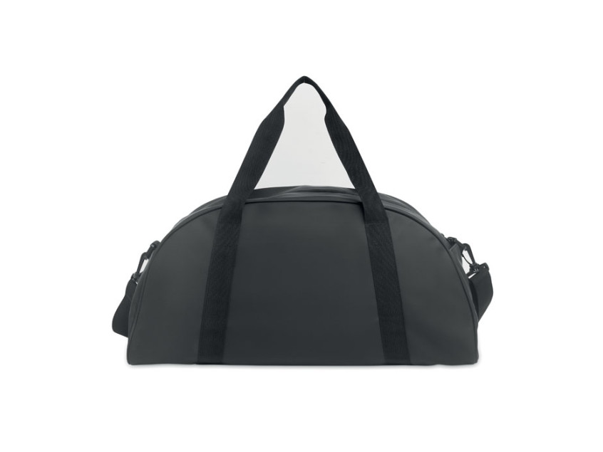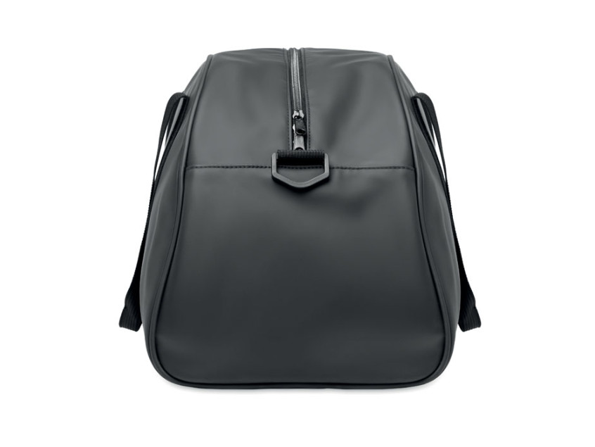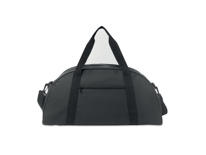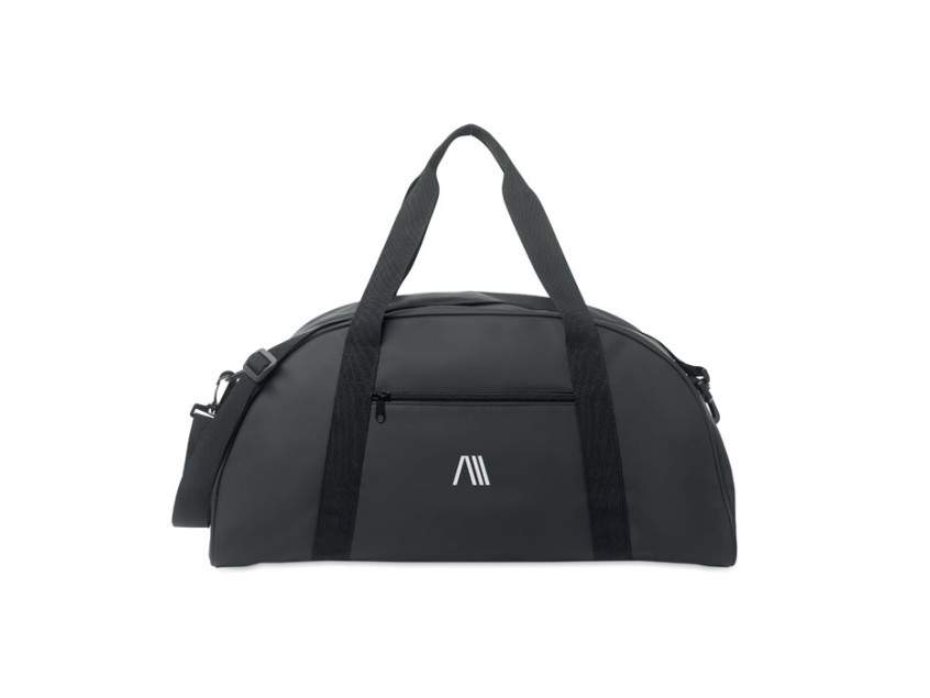Сумка из мягкого полиуретана с усилением дна. Одно основное отделение, передний и внутренний карман на молнии. Подкладка из переработанного полиэстера 210D RPET. 2 ручки и один регулируемый съемный плечевой ремень.