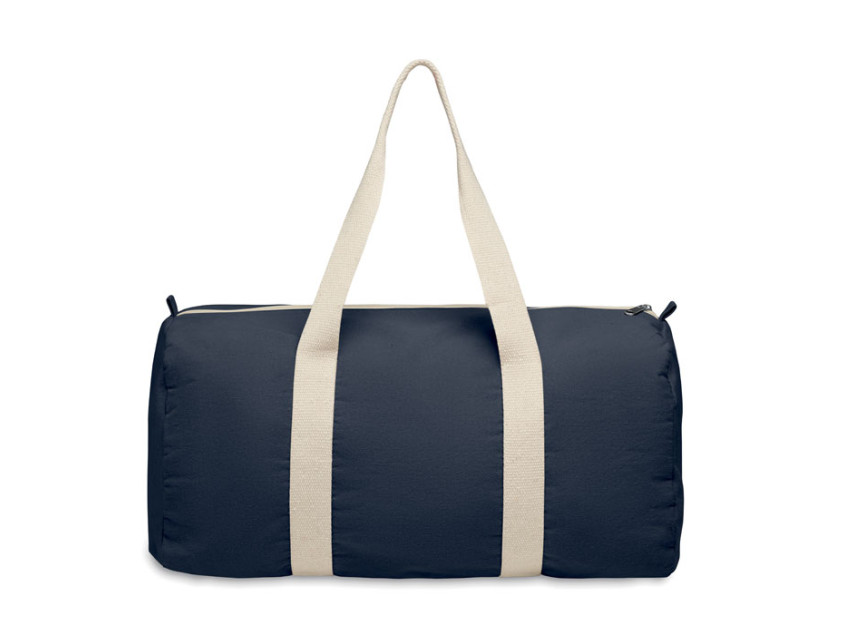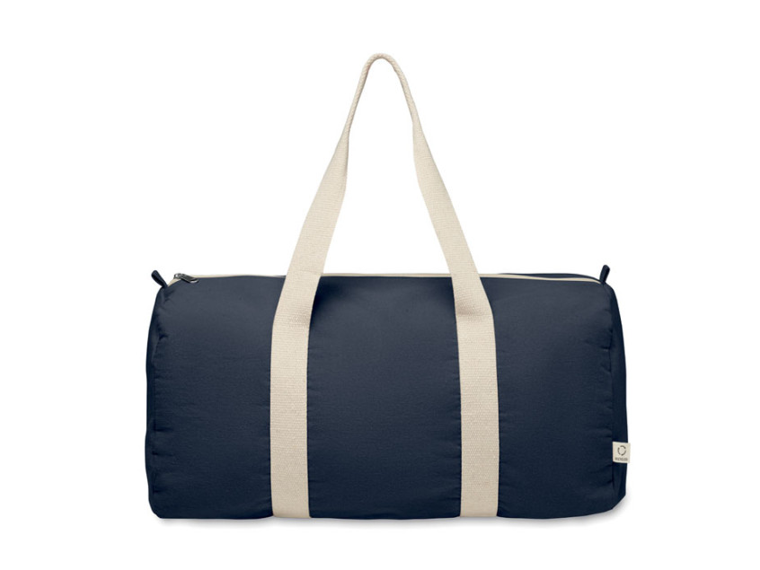 Спортивная или дорожная сумка с боковым отделением на молнии и внутренним карманом на молнии из переработанного хлопка (80%) и переработанного полиэстера (20%) плотностью 320 гр/м² с длинными ручками.