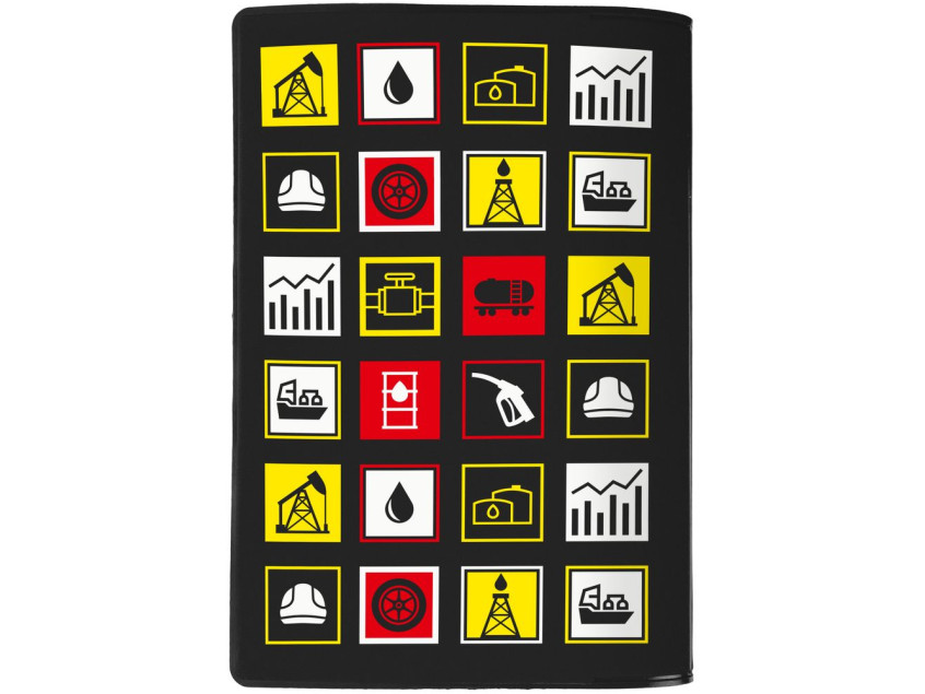 Прочный непромокаемый материал аксессуара сохранит главный документ сотрудника, а минималистичный дизайн создаст особую эстетику. В каждой части общего рисунка изображены главные символы нефтегазовой промышленности.