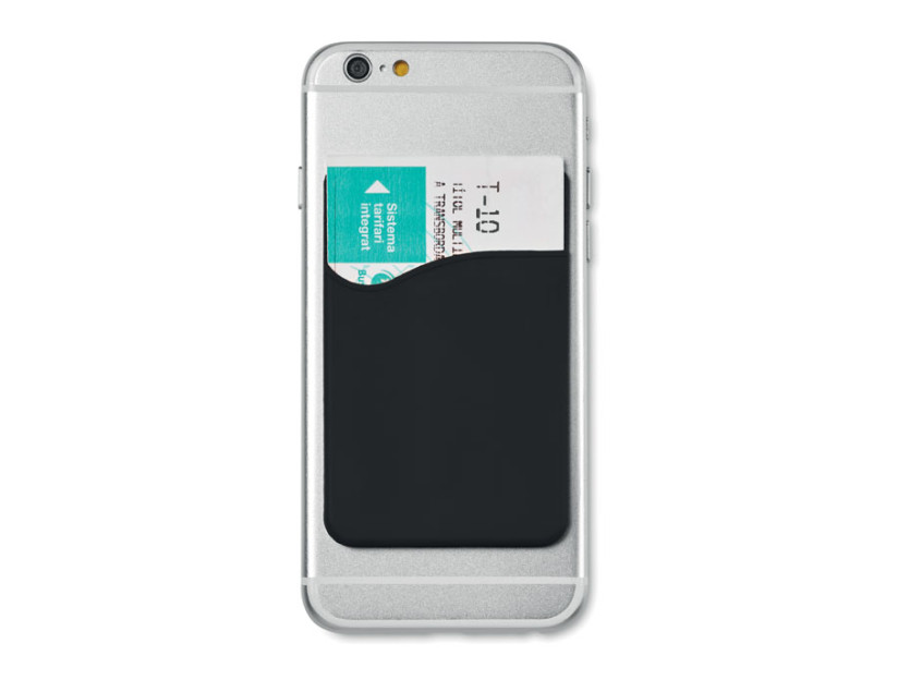 Силиконовый чехол для пластиковых карт с клеющейся пленкой на оборотной стороне, что позволяет закрепить чехол на корпусе мобильного телефона.