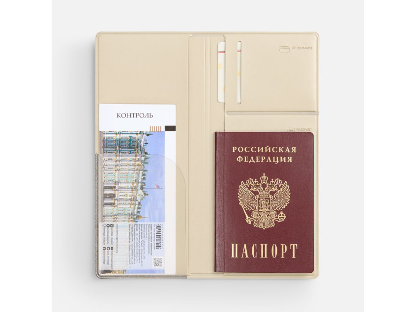 Органайзер имеет 5 отделений: для билетов, паспорта, визиток или кредитных карт.