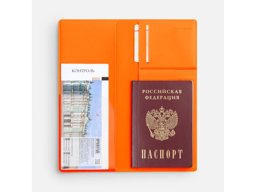 Органайзер имеет 5 отделений: для билетов, паспорта, визиток или кредитных карт.