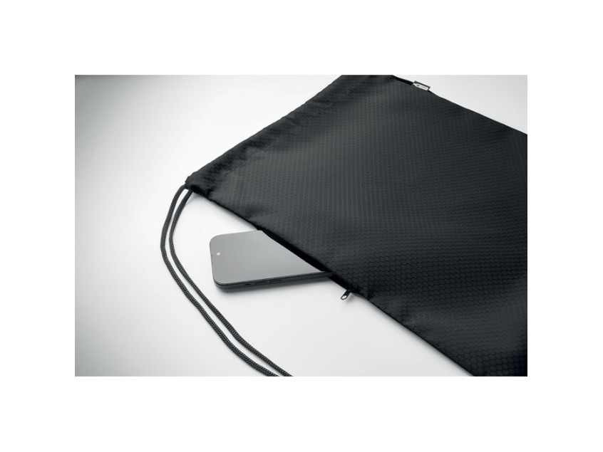 Рюкзак-мешок из полиэстера RPET 420D с вертикальным боковым карманом на молнии и подкладкой из RPET 210D. Имеет прочные лямки с обеих сторон. Объём 4,5 л, максимальная нагрузка 5 кг.