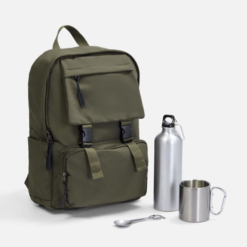 Материал: | рюкзак - нейлон; кружка - пищевая сталь, 304, внутри - нержавеющая сталь, 201; бутылка - алюминий; столовый прибор - нержавеющая сталь, 420 |