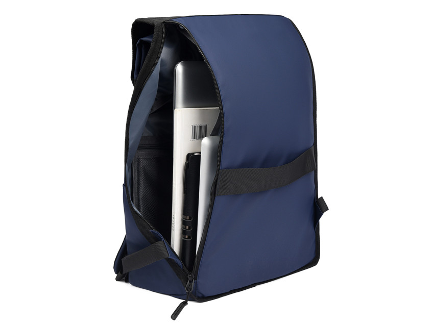 Сбоку вход в уплотнённое отделение на молнии для ноутбука 15 дюймов.