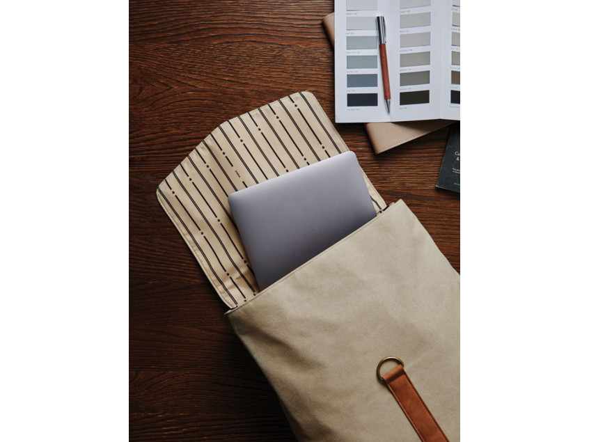 Рюкзак Bosler изготовлен из переработанного канваса, не только выглядит модно, но и демонстрирует заботу об окружающей среде. Он оснащен отделением для ноутбука и привлекает внимание контрастными деталями из полиуретана и латунной фурнитурой.